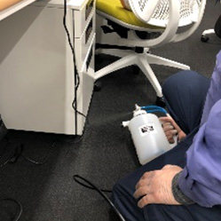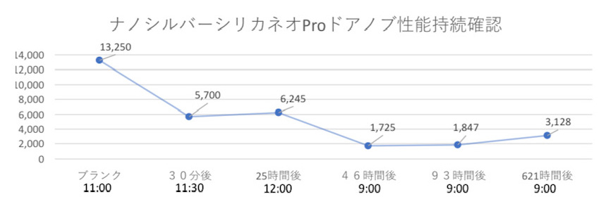 精製水と一緒にスプレー、水は落ちてもナノシルバーシリカは空気中やターゲットに付着し残留し留まり効果の発揮=抗菌成分がその場に留まり、繁殖抑制と後からくる細菌を先回り抗菌