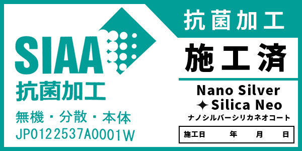 SIAA(抗菌製品技術協議会)マークは、抗菌加工製品に求められる「抗菌性」「安全性」「適正な表示」の基準を満たした安心のシンボルマークです。